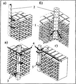 а — металлическая для наружных углов, б — то же, для внутренних, в — металлическая со скобами, г — деревянная промежуточная :
