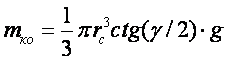 Массу материала, содержащуюся в конической части отверстия, определяют по формуле