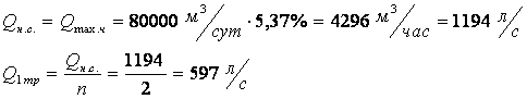 - Определяем расчетную подачу насосной станции, переходя от подачи в процентах от суточной производительности насосной станции к подаче, выраженной в л/с.