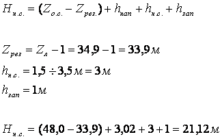 - Определяем напор насосной станции по формуле: