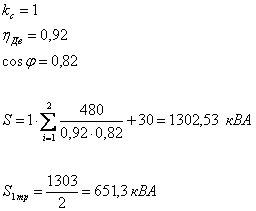 Мощность трансформаторов 750кВА