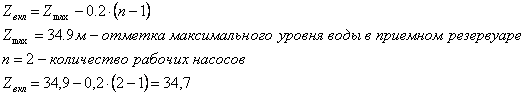 1. Определим заглубление насосной станции, которое определяется отметкой оси насосов и условиями размещения всасывающих трубопроводов.