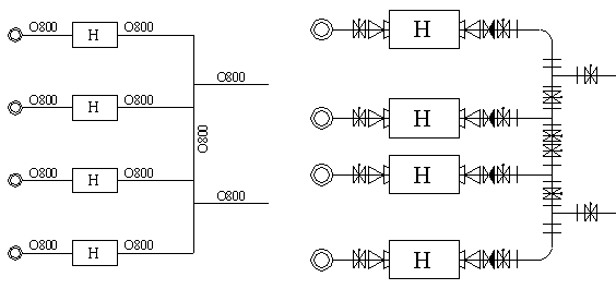 На схему расположения насосных агрегатов и трубопроводов выписываются диаметры, и определяем места установки арматуры и фасонных частей.