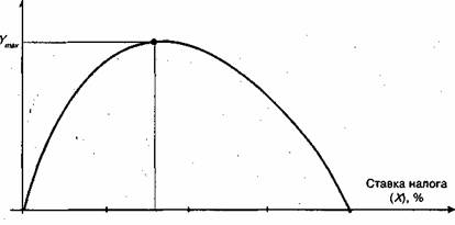 Графическое отображение зависимости между доходами государственного бюджета и динамикой налоговых ставок получило в экономической теории название «кривой Лаффера» по имени американского экономиста А. Лаффера (рис.1)