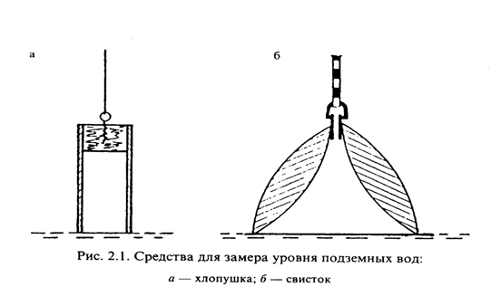Первоначально проверяют глубину залегания уровня подземных вод. Это выполняется с помощью специальных приспособлений. (Так же при этом проводиться отбирание проб воды на разных глубинах для проведения химического анализа.)
