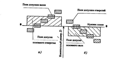 Системы допусков и посадок ИСО и ЕСДП для типовых деталей машин построены по единым принципам. Посадки в системе отверстия и в системе вала показаны на рис. 3.
