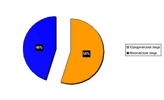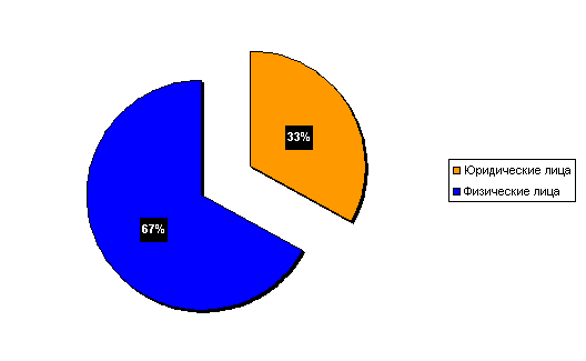По форме собственности все организации города делятся на частную собственность (70 %) и государственные организации (30%). Сегментация потребительского рынка по количеству покупателей для организаций и для частных лиц представлена на рисунке № 3.