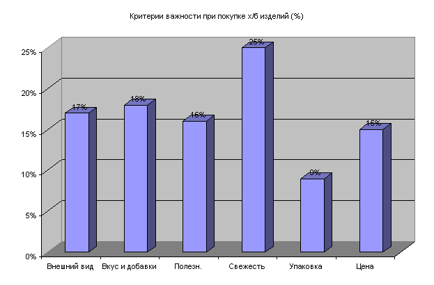при покупке хлеба являются: свежесть (25%), вкус (18%), внешний вид (17%), полезность (16%), цена (15%), упаковка (9%) .