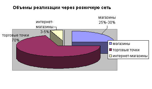 Особенность работы с магазинами: работают на реализацию; заинтересованы в выручке, поэтому ищут новые нестандартные товары и, как правило, сами создают хорошую рекламу нового товара; проводят консультирование по товарам; имеют большие торговые площади и хороший ассортимент; стараются держать свою марку, поэтому работают только с качественной продукцией; делают самые высокие наценки из всех розничных продавцов; ориентация на средний класс покупателя (обязательно наличие всех сертификатов на товар).