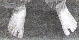 Стопы также изменены. Отмечается наклонность к плоскостопию, что, по-видимому, связано с гипотонией мышц свода стопы и слабостью связочного аппарата. Промежуток между 1и 2 пальцами стопы увеличен. Часто отмечается перонеальное отставание пальцев стопы, причем 4 палец часто лежит на 3 и 5