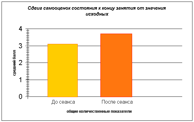 4) Таким образом, становится очевидным увеличение положительных самооценок состояния к концу занятия.
