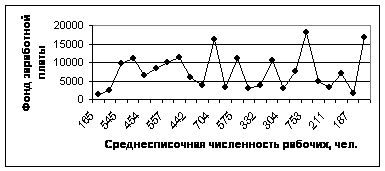 В данном разделе необходимо исследовать тесноту линейной множественной связи между результативным признаком и двумя факторными. В качестве результативного признака был взят согласно исходному заданию фонд заработной платы. Факторными признаками являются среднесписочная численность рабочих и фондовооруженность рабочих.
