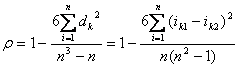 ik1, ik2 – ранги k- го объекта соответственно по первому и второму признакам