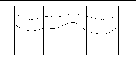 Идеальная самооценка может снижаться в силу работы некоего компенсаторного (защитного) механизма, который в некоторых случаях правомерно назвать «механизмом защиты от депрессии». Признак этого механизма – параллельность линий актуальной и идеальной самооценки при некоторой неустойчивости, что выглядит как «лента». В таких случаях можно говорить: «Наблюдается заметное повышение удовлетворённости собой за счёт компенсаторного понижения высоты идеальной самооценки». Это вовсе не означает, что отношение к ценностям реалистично. Человек просто снижает «уровень мечты», чтобы чувствовать себя удовлетворённым тем, что у него есть. Особенно это справедливо когда актуальная самооценка понижена. (Рис. 7).