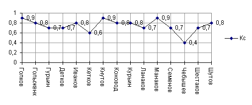 Для более наглядного представления о результатах тестирования, ниже представлен график показателей Кс (рис.2).