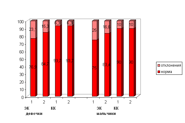 Рис. 14 Динамика изменения ПЗМР у первоклассников ЭК и КК.