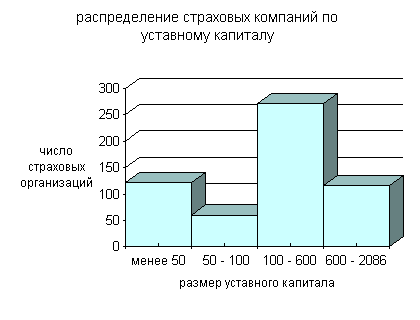 Для графического изображения интервальных вариационных рядов применяется гистограмма. На рис.1. изображена гистограмма ряда распределения страховых компаний по размеру уставного капитала ( по данным таблицы 3).