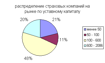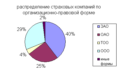 На Рис. 2. изображена диаграмма, отражающая долю каждой страховой компании по размеру уставного капитала. На Рис. 3. - долю каждой страховой компании по организационно-правовой форме.