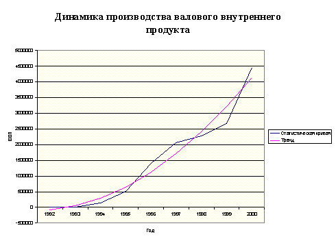 На основании таблицы 4 мы получили следующее уравнение, описывающее тенденции изменения объема производства валового внутреннего продукта: