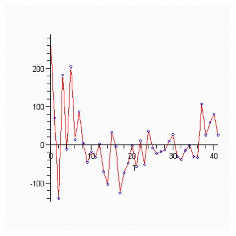 Колеблемость - это отклонения уровней динамического ряда от тренда, т.е. остатки регрессии. Найдем остатки регрессии (т.е. очищаем признак от тренда)