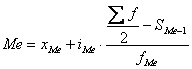Sme-1 - сумма накопленных частот до медианного интервала;