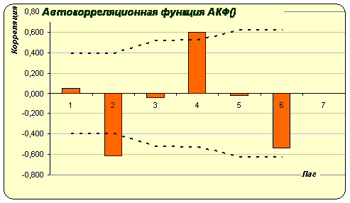 Можно видеть значимую автокорреляцию 1-го и 2-го порядков. Таким образом, мы установили наличие полугодовалой и годовалой сезонности.
