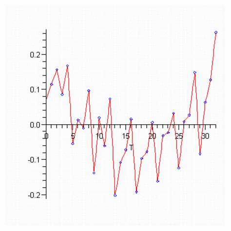 Найдем остатки регрессии (т.е. очищаем признак от тренда)