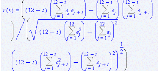 Степень тесноты связи между последовательностями наблюдаемого временного ряда, сдвинутого относительно друг друга на t единиц может быть определена с помощью коэффициента автокорреляции