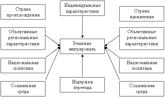 Рис 1. Факторы, влияющие на принятие решения о миграции