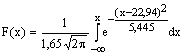 . Далее вычисляют вероятности попадания СВ Х, имеющей нормальное распределение, с параметрами а = 22,94, σ = 1,65 в частичные интервалы (хi-1; хi) по формуле