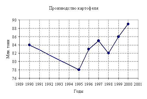 4. Построим график производства картофеля в регионе за 1990-2000гг. Он имеет вид: