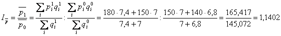 Используя исходные данные, и приняв цены в базисном периоде за 1, получим следующую таблицу: