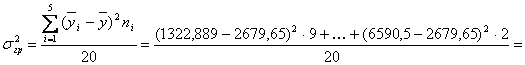 Определим теперь среднее значение, общую дисперсию, и межгрупповую дисперсию суммы активов банков:
