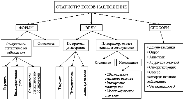 Статистическое наблюдение организуется в форме отчетности и специально организованного статистического обследования.