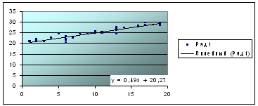 3) а0 = (970,1*4419 – 10340,7*343) : (35*4419 – 343*343) = 19,99