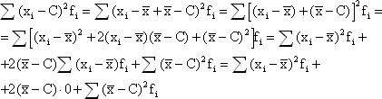 3. Сумма квадратов отклонений индивидуальных значений признака от средней арифметической меньше, чем сумма квадратов их отклонений от любой другой произвольной величины С: