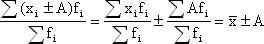 4. Если все осредняемые варианты уменьшить или увеличить на постоянное число А, то средняя арифметическая соответственно уменьшится или увеличится на ту же величину: