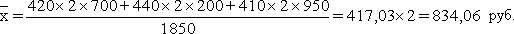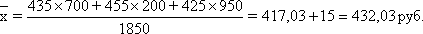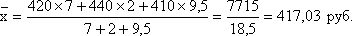 417,03 · 1850 = 420 · 700 + 440 · 200 + 410 · 950