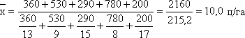 Общий валовой сбор мы получим простым суммированием валового сбора по районам. Данные же о посевной площади отсутствуют, но их можно получить, разделив валовой сбор по каждого района на урожайность. С учетом этого определим искомую среднюю, предварительно переведя для сопоставимости тонны в центнеры: