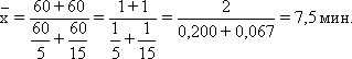Подойдем к решению через исходное соотношение средней. Для определения средних затрат времени необходимо общие затраты времени за любой интервал (например, за час) разделить на общее число обработанных за этот интервал двумя работниками заказов: