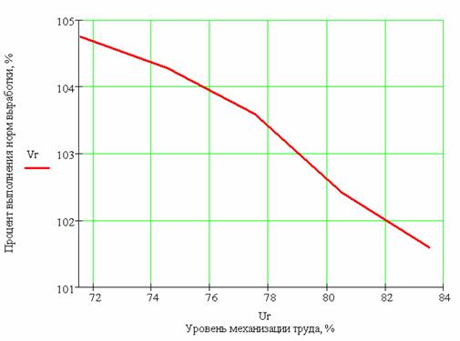 По данным групповой таблицы видим, что с ростом среднего значения уровня механизации труда в группе, значение процента выполнения норм выработки по группе в целом возрастает.
