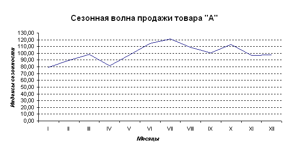 2. Построим график сезонной волны продажи товара «А»: