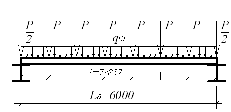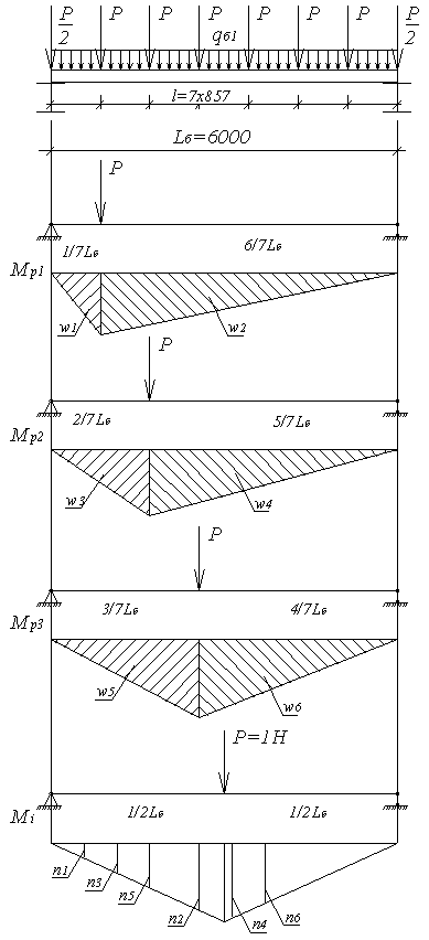 Находим прогиб вспомогательной балки при заданной схеме нагружения: