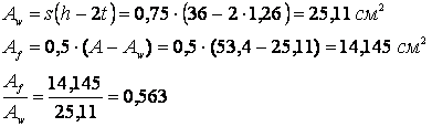 По Wтр, Jтр, по сортаменту подбираем швеллер №36 ГОСТ 8240–89 со следующими характеристиками: Jx=10820 см4, А=53,4 см2, mбн=41,9 кг/м, h=360мм; b=110мм, s=7,5мм; t=7мм, Wx=601 см3; Sx=350 см3; z0=2,68cм.