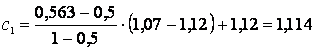 из таблицы 66 СНиП II-23-81* находим коэф. с1 линейной интерполяцией: