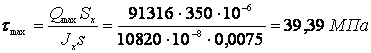 Максимальное значение касательных напряжений имеют в точках, расположенных на нейтральной оси.