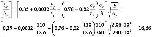 Наибольшее значение отношения lef к ширине сжатого пояса bf, при котором требуется проверка общей устойчивости, определяется по формуле: