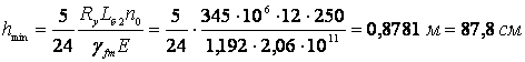 3) Высота балки из условия минимальной жёсткости при обеспечении прочности: