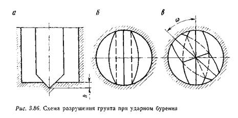 Ударно-вращательное бурение является в принципе вращательным бурением, но таким, при котором буровой инструмент кроме воздействия большого статически приложенного осевого усилия и крутящего момента подвергается дополнительно воздействию динамических нагрузок — ударов. В результате этого резец лучше внедряется в породу и снимает более толстую стружку. Поэтому производительность ударно-вращательного бурения (в породах с f = 6÷14) больше, а энергетические затраты на единицу длины или объема шпура меньше, чем при вращательном или ударном бурении.