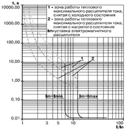Время – токовые характеристики ВА 57Ф35-340010, приведенные заводом изготовителем «ОАО Дивногорский завод НВА»